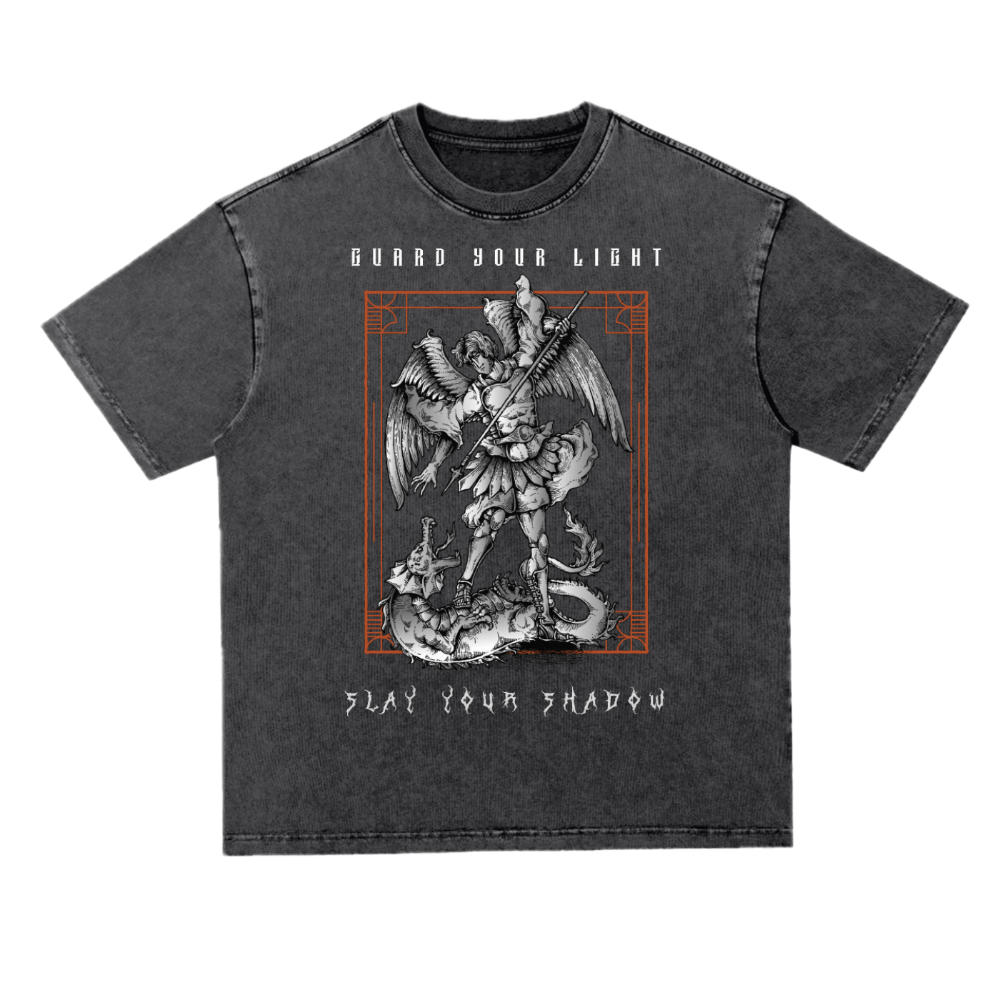 This heavyweight 300GSM oversized tee features a divine clash of darkness and purpose, wrapped in a bold acid-wash finish and relaxed silhouette. Built from 100% cotton, it's made for those walking the line between discipline and disruption. Now tagged with the official “HIDDIN ≠ SEEKER” inner mark — proof you found it