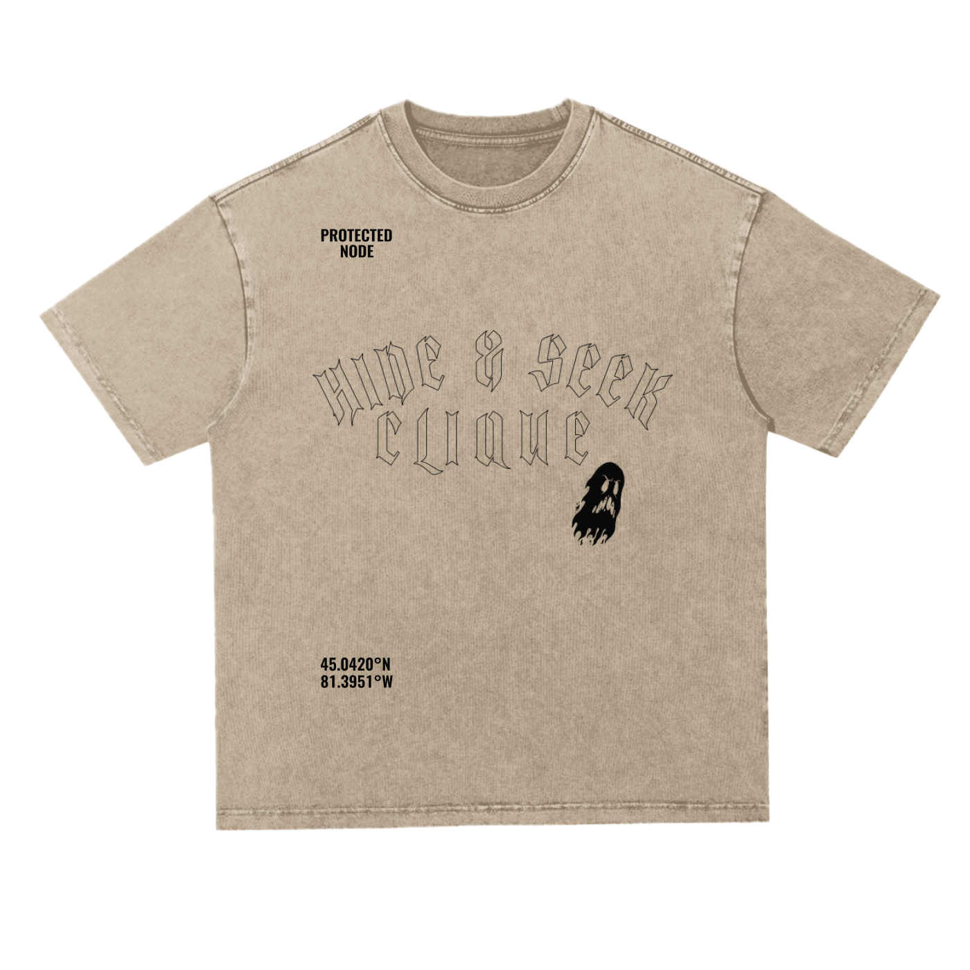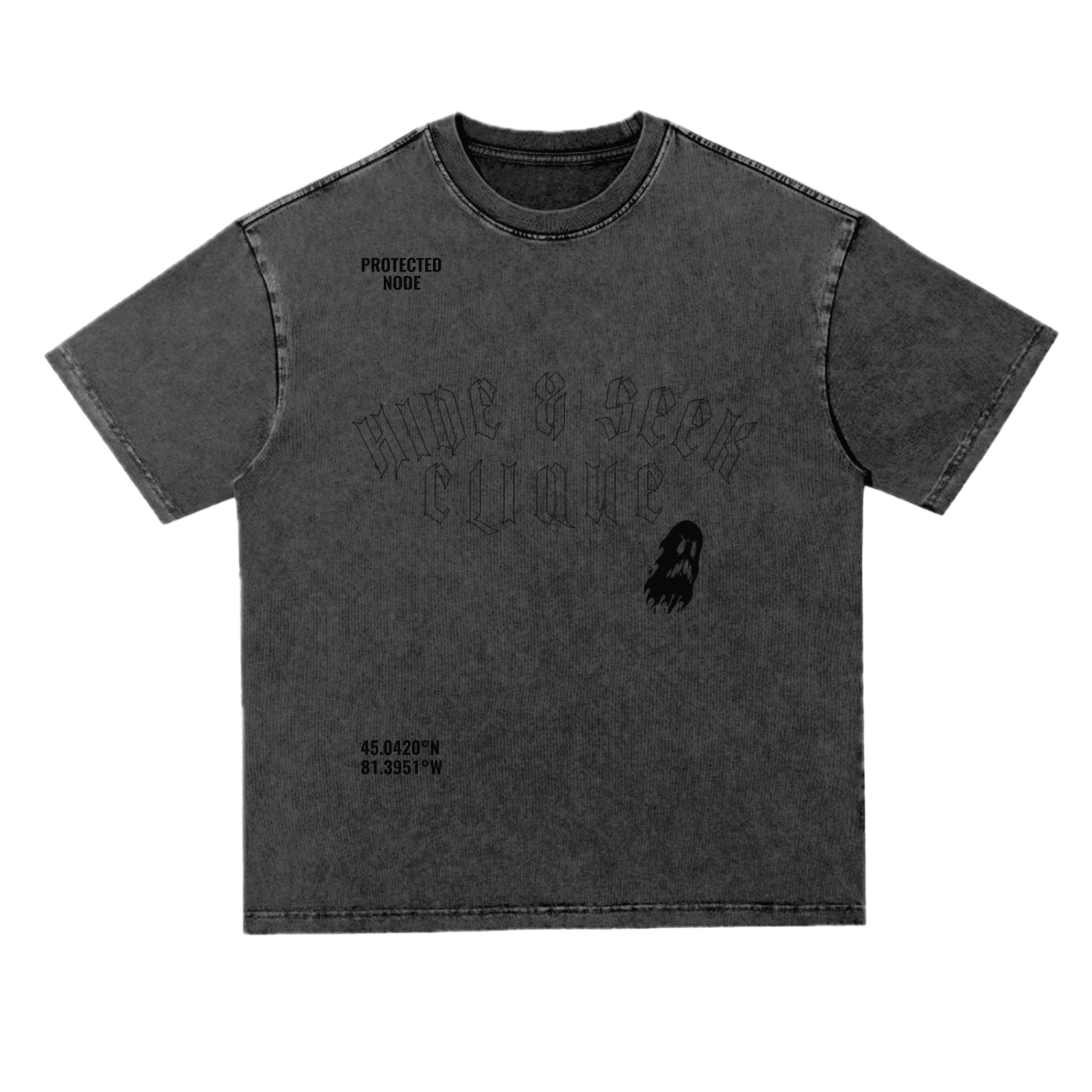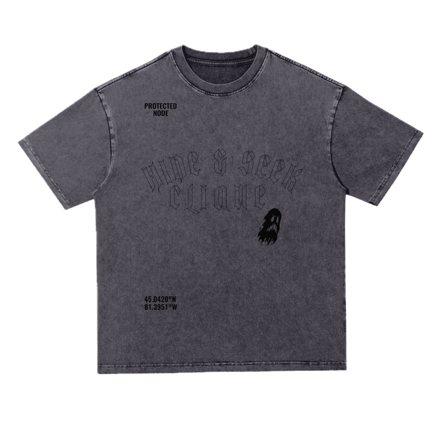Shielded by secrecy and stitched for seekers, this heavyweight 300 GSM acid-washed tee operates as a visual firewall. Featuring the "PROTECTED NODE" chest tag, coordinates to a classified safe point, and the iconic ghostmark sealāall printed on a rugged cotton build that wears like armor but moves with you. Now tagged with the official āHIDDIN ā SEEKERā inner mark ā proof you found it
