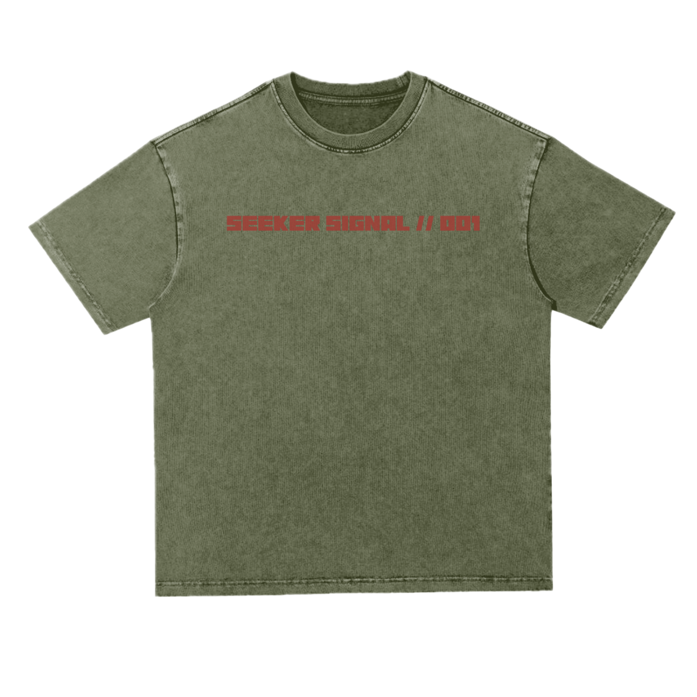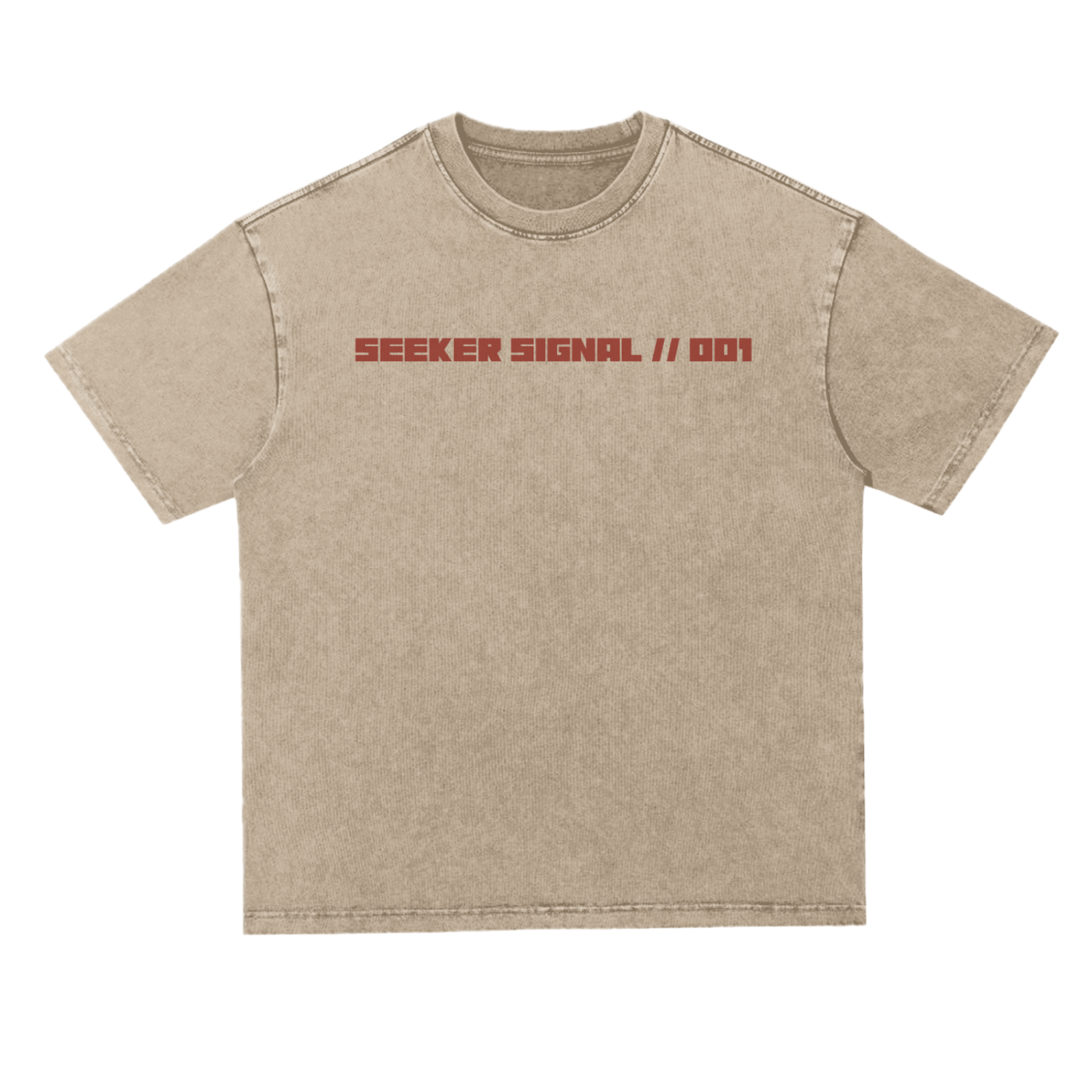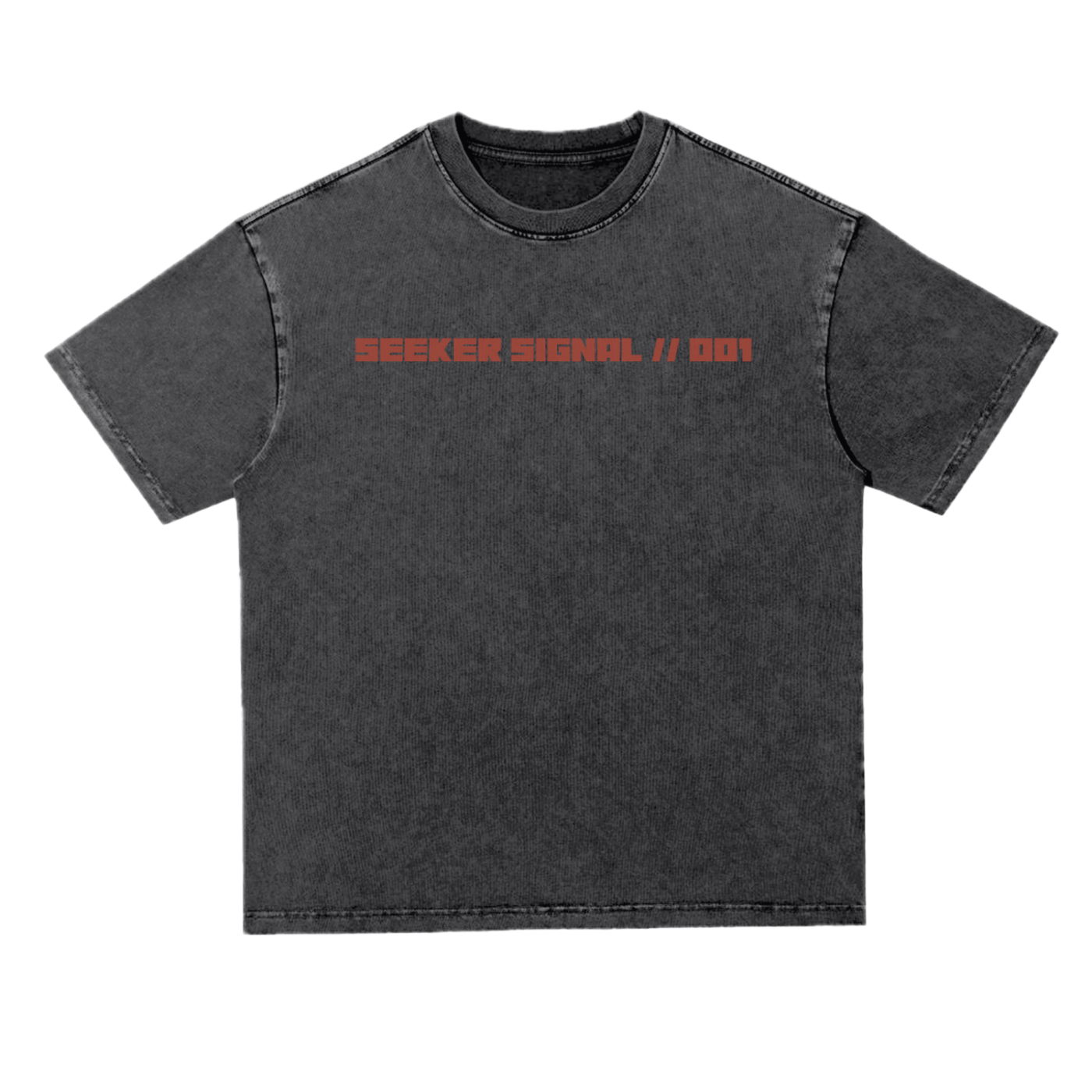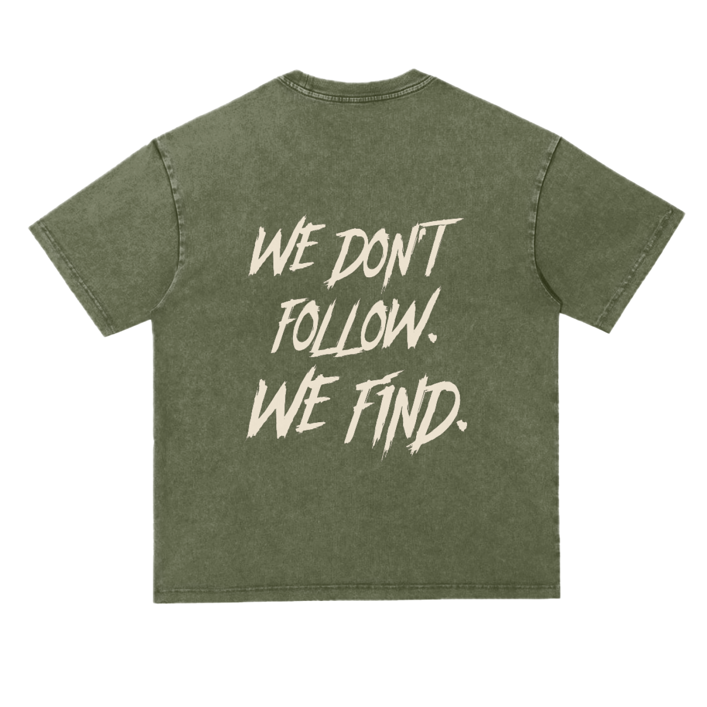 Signal received. Transmit your frequency in this heavyweight 300 GSM acid-washed tee—crafted for durability, dropped shoulders, and effortless edge. Featuring our “WE DON’T FOLLOW. WE FIND.” declaration stamped loud on the back, this piece is built for those who move off-grid and on-purpose. Now tagged with the official “HIDDIN ≠ SEEKER” inner mark — proof you found it